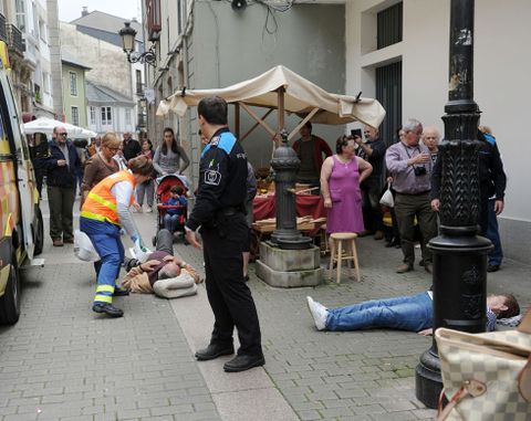 05 jun 2016 . Actualizado a las 05:00 h.Curioso accidente el ocurrido ayer, hacia las 13.30 horas, en la calle peatonal de Ribadeo, donde un vecino que iba caminando por el lugar se cayó a la altura de la taberna El Cabas, llevándose por delante a una mujer que transitaba también por la zona. Al parecer, se trata de una vecina de A Coruña que estaba de excursión y recibió un fuerte impacto en la espalda.