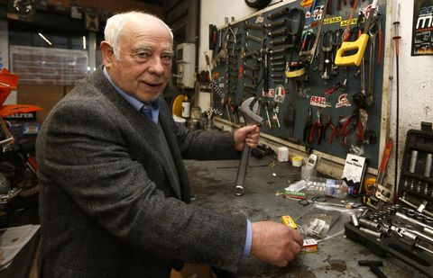 Fue en 1964 cuando se encendían los motores de uno de los negocios locales de Xove, con Telmo Mariño Martínez, al que en la nueva etapa relevó su hijo Ángel Mariño, dándole el padre el siguiente consejo, de empresario a empresario al mismo tiempo: «Díxenlle que escollera aos mellores clientes e mirara o asunto con xeitiño». Tanto en la pasada como en la presente, destaca que Motos Telmo «vai ben e hai moito traballo, mellor imposible». Jubilado desde hace una década aproximadamente, según cuenta, eligió el taller como modo de vida porque «as motos sempre me gustaron», dice. «Cando traballei eu ía moi ben todo porque as motos, daquela, eran moi sinxelas. Tamén ciclomotores, dos que agora xa hai moi pouquiños. Amáñanse máis ben motos grandes, tamén motoserras, desbrozadoras, os chamados coches sen carné... Creo que aquí non temos ningunha competencia», señala en la misma semana en la que va a ser homenajeado, en la cita de Agora Xove. Telmo Mariño tuvo su primera moto, recuerda, con 21 años de edad.