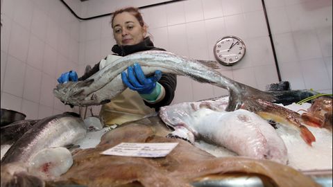 -Normalmente vienen las amas de casa que van a cocinar. También viene algún hombre. Hay gente que ya tiene los menús fijos todas las navidades; por ejemplo siempre comen merluza o centollo por Nochebuena. O todos los años rape.... Es como una tradición. Esta zona no es tanto de besugo, aunque sí hay gente que lo pide. Rape y merluza son casi de lo que más se vende para Nochebuena. También algo de pescado de horno, pero sólo hay tres o cuatro especies que se adaptan: sargo, palometa roja, dorada.