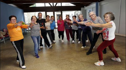 18 may 2018 . Actualizado a las 05:00 h.Imaginémonos que estamos en China. Sí, China. Paseamos por un hermoso parque en Pekín. Al amanecer, seguramente veamos cómo grupos de mayores practican con entusiasmo el antiguo arte marcial chino del taichí. Es la gimnasia suave que vino de allá hace tiempo y que en A Mariña caló entre población joven... y no tan joven (refiriéndonos a la edad, no al espíritu). Un ejemplo lo tenemos en Celeiro, en Viveiro. La verdad es que la Casa do Forno y su entorno se prestan para la práctica: paredes de piedra, sala luminosa y espaciosa, campo verde y con árboles en plena ebullición primaveral... Reina la paz, mientras un grupo de una decena de mujeres de entre 70 y 83 años realizan los ejercicios siguiendo las indicaciones de José Manuel Bellas. Es el monitor de este grupo que comenzó hace casi diez años. En esta clase en concreto están Dolores Franco (la más longeva), Charo Meitín, Olga Fernández, Luz Rivas Cobo, Milagros Varela Cinza, Manuela Cambeiro, Carmen Pino Fernández y Carmen González Posada. Faltan Feli, Maruxa, Tilde y Carmen, avisan las presentes. Son alrededor de 13, pero llegaron a ser unas 30.