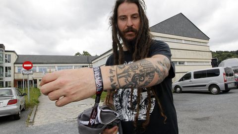 Desde Madrid llega Laura, con los símbolos de muchas amistades tatuados. ¿El más especial? El que tiene junto con una amiga en referencia a su editorial de literatura infantil. Las serpientes también están presentes, simplemente porque le encantan. De animales va la cosa también si vemos la pierna de Pablo, de Carballo, que representa su decisión de ser vegano. Para él, además, el Resurrection Fest tiene un significado excepcional: su grupo Hongo es uno de los integrantes del cartel.