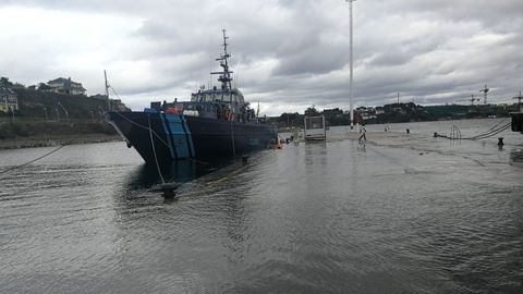El agua cubrió espacios de la dársena portuaria del muelle ribadense
