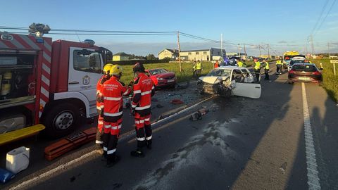 La otra persona herida, una mujer, viajaba en otro de los turismos siniestrados y también tuvo que ser trasladada al Hospital Público da Mariña, en Burela. Los bomberos del parque comarcal de Barreiros tuvieron que emplearse al máximo para cortar varias partes del vehículo y poder retirar con cuidado a la mujer del mismo.