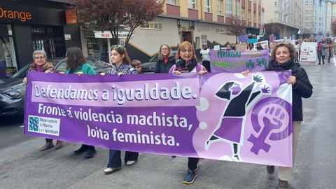 Quisieron así poner el foco en las cuidadora y en denunciar la precariedad en la que una gran parte desarrolla su labor, a menudo cuidando sin tener una relación laboral: «Queremos visibilizar e denunciar a situación ligada ao sector dos cuidados: salarios moi baixos, infravaloración, e mesmo agresións e acoso», señalaron desde el Observatorio, que lideró la manifestación con la primera pancarta.