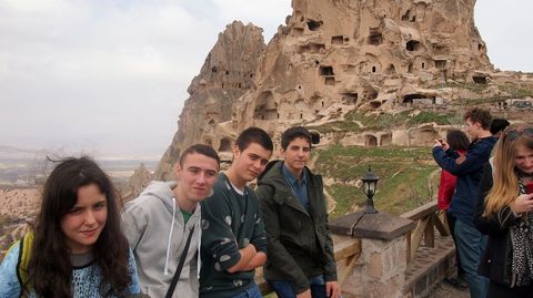 Alumnos y profesoras viajaron a Turquía del 15 al 20 de este mes para participar en una de las visitas programadas del proyecto Comenius en el que están participando desde el curso pasado. Visitaron Estambul, Capadocia y Ankara, destino principal del viaje. Esos días alumnos y profesoras compartieron la forma de vida turca, participaron en actividades en el instituto y en la despedida disfrutaron con una cena con música y danza del vientre en Capadocia, además de ver otros bailes populares de aquel país. Todo perfecto hasta el susto el día de regreso pero por fortuna quedó solventado con rapidez. Alumnos y profesores ahora ya piensan en la próxima cita en Polonia en junio de este mismo año para seguir compartiendo costumbres con otros países y lenguas comunes en una experiencia muy positiva.