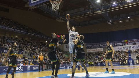 En uno de los laterales de la tribuna dos presenciaron el encuentro varias docenas de seguidores del conjunto vizcaíno, que se hicieron notar durante el calentamiento y, por momentos, también durante el partido.