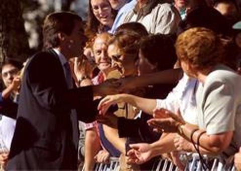 Cientos de personas se agolparon en el paseo de A Calzada para recibir al presidente del Gobierno Más que una visita, lo del presidente del Gobierno en Cambados fue un maratón. Entre bajar del helicóptero y tomar la inexcusable copa de albariño transcurrieron unos cuarenta minutos. Eso sí, el revuelo que se montó fue de impresión. El máximo dirigente logró reunir en el tramo que une A Calzada y el Parador a todo un destacamento de periodistas, autoridades y gaiteiros, además de cientos de personas en busca del saludo del presidente tras las relucientes vallas metálicas. Todo esto sucedía bajo un estrecho cordón policial.