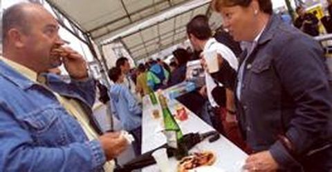 A pesar del mal tiempo, centenares de personas visitaron ayer la fiesta de A Illa En los stands se pueden probar hasta seis preparaciones distintas de este popular cefalópodo