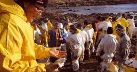 La nieve y el chapapote convivieron durante unas horas en la comarca de Barbanza. Mientras unas manos jugaban, otras limpiaban playas