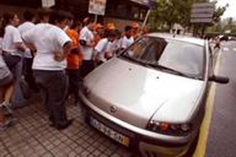 ?os alumnos del IES Torrente Ballester que participaron este año en el programa de educación vial Ponte en ámbar salieron ayer a las calles de Pontevedra para amonestar simbólicamente a conductores y peatones que cometían infracciones o se comportaban de manera inprudente. Ente otros, los alumnos criticaron a conductores que aparcaban sobre la acera o que no se detenían en los pasos de peatones. El programa Ponte en ámbar fue el ganador gallego del programa Renault de Educación Vial.
