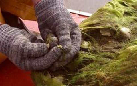 14 jul 2003 . Actualizado a las 07:00 h.Un tupido manto de algas cubre los fondos de las concesiones marisqueras de los rañeiros de Vilaxoán. Esa alfombra verde se ha ido creando ante la mirada impotente de los mariscadores. La Xunta les ha prohibido limpiar sus concesiones durante los fines de semana. Y de lunes a viernes bastante trabajo es sacar del mar el cupo de almeja, ahora que las mareas y el mercado hacen rentable esa actividad. Ayer el mar estaba como un plato. Los rañeiros trabajaban en sus concesiones. Pero algunas están vedadas por las algas. Como Canelas, o como Castelete. Por eso los mariscadores miran el futuro con intranquilidad. Su presidente, José Luis Villanueva, lo explica con claridad. «O recurso sabemos que está morrendo», decía ayer mientras sacaba del mar una muestra de algas. Su acción deja a la vista un trozo de arena oscura. «Eso é podredume, porque as algas deixan sen osíxeno todo o que hai debaixo», explica. Las almejas que quedan tapadas por la capa verde mueren. Y sus larvas, que dentro de unos meses se habrían convertido en piezas comerciales, se pierden entre la intensa marea de algas. El problema es grave. No por la presencia de estos vegetales marinos, que es normal en estas fechas, sino por la imposibilidad de retirarlos. Los rañeiros aún no vislumbran una solución a su problema. Según Villanueva, la Xunta no parece dispuesta a dejarles limpiar durante los fines de semana. «O argumento que nos dán é que teñen moitos expedientes contra xente que aproveita para roubar marisco», explica. Un argumento, dice, «que non ten nin pés nin cabeza», ya que «cando se vai limpar non se levan aparellos de marisqueo, entre outras cousa porque molestan». El colectivo al que representa Villanueva está dispuesto a tomar todas las medidas a su alcance para conseguir el permiso necesario para limpiar. «Xa pedimos o apoio da Federación de Confrarías, e esperamos que algún político tome cartas no asunto e adopte unha medida consecuente co problema», explica. En su embarcación, junto a un montón de algas recién extraído, yacen dos estrellas de mar. Estos grandes depredadores también campan a sus anchas por las concesiones, engullendo a su paso la almeja fina y babosa que encuentran. De vuelta a puerto, los enemigos de los rañeiros son devueltos al mar. Por si las moscas. Y es que las estrellas tampoco se pueden sacar sin cubrir todo un maratón burocrático. Mientras, ellas siguen comiendo.