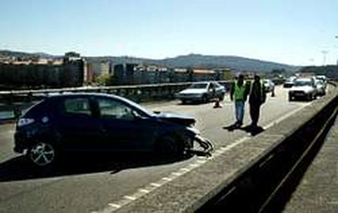 ?obre la una de la tarde de ayer, un accidente de circulación provocó importantes retenciones -en la imagen- en la autopista AP-9 a su paso por Pontevedra. El subsector de Tráfico de la Guardia Civil precisó que el siniestro, que se produjo en las inmediaciones del puente que cruza sobre el río Lérez, se había limitado a daños materiales. Agentes de esta unidad se trasladaron al lugar de la colisión para normalizar la circulación de los vehículos que utilizaban este vial.