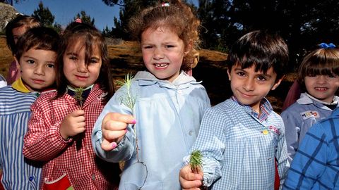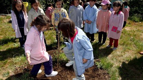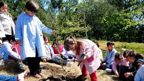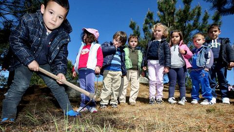 Cualquiera que el lunes a mediodía visitase la escuela infantil de A Pastora, en Cambados, encontraría el vacío en lugar de las risas de los niños. Los pequeños, todos -y todos eran nada menos que 138- se encontraban a pocos metros de allí, en el monte que da nombre al centro educativo. Allí se fueron para hacer una plantación y así contribuir a la reforestación de los bosques, tema que centra este año la programación de Voz Natura, el programa ambiental que impulsa la Fundación Santiago Rey Fernández-Latorre y al que este curso se ha incorporado la escuela infantil de A Pastora.