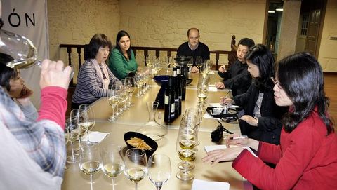 La denominación de origen Rías Baixas vendió el año pasado 45.450 litros de vino a Japón, lo que supuso un incremento superior al 15 %. Con este escenario, en Rías Baixas miran al nipón como uno de los mercados emergentes por los que conviene apostar y por eso está estos días en Galicia una delegación de cuatro prescriptores japoneses tomando buena nota de la oferta de vinos que pueden encontrar por estos lares. Lo de buena nota es literal pues los expertos no paran de tomar apuntes sobre todo lo que ven y le cuentan en las visitas que empezaron ayer por varias bodegas de Rías Baixas. La última parada del día fue en Pazo Baión (Vilanova).