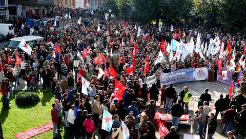 A la convocatoria acudieron puntuales miles de ciudadanos que se concentraron en la Alameda convocados por los sindicatos CC.OO., UGT y la CIG. La manifestación recorrió de forma pacífica las calles de la ciudad para finalizar junto a la plaza de Ravella, donde los líderes sindicales arengaron al personal sin ahorrarse alusiones al alcalde de la ciudad, que era testigo de la movilización dentro de la casa consistorial.