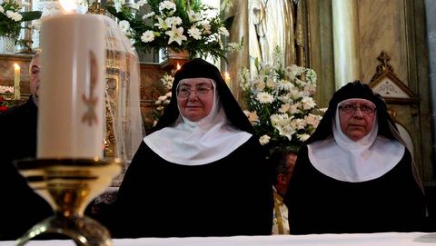 Las religiosas, interesadas en agradecer a los vecinos su compromiso con Santa Rita, habían solicitado permiso para dejarse ver en el acto de entrega de las medallas a los alcaldes. Y pudieron hacerlo las dos responsables del convento; las demás, oyeron la misa desde arriba, tras las rejas a las que obliga su clausura.