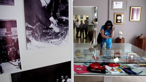 Ventura es solo uno de los muchos grovenses que han colaborado en la organización de esta muestra. Y es que el Concello quiso implicar a todos los mecos en la recopilación de materiales para la ocasión. María Eloísa Álvarez Corbacho -Marujita la de don Joaquín- cedió para un álbum elaborado con fotos de la fiesta en el año 1964. Ella había participado activamente en la organización del evento y guardó cuidadosamente las fotos y los recuerdos a ellas aparejados. También la cafetería El Habanero colaboró con la exposición, cediendo una jarra de vino y unas tazas que llevan el sello de la Festa do Marisco. Y de Casa Otero salió una pequeña jarrita en la que está escrito, con finas letras, el menú de una de las comidas oficiales de la fiesta.