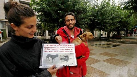 Una pareja atraviesa España para seguir en Bueu la pista de su perra desaparecida en Catoira en el mes de agosto