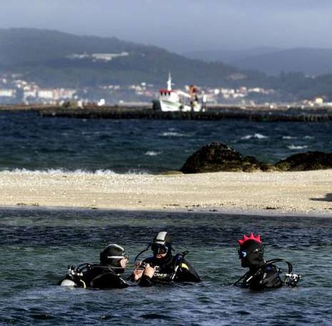 El viaje arranca en la sede del club en el puerto vilagarciano. Lo primero, seleccionar los equipos: traje, botella, chaleco, plomos, aletas... Nada ver con esas experiencias playeras con gafas y tubo. A continuación, se suscriben los seguros de rigor y comienza el embarque del material en la lancha neumática de Medusa que nos llevará a la zona de inmersión.