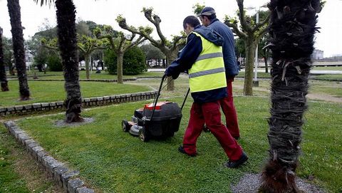 Una brigada de tres operarios realiza ya el mantenimiento de O Centenario, el parque de A Concha y el Miguel Hernández