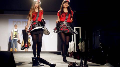 Abrieron el fuego los más pequeños, que mostraron las propuestas de tres tiendas de la ciudad para este otoño-invierno. No faltó la espontaneidad y la anécdota, como la que protagonizó la pequeña que desfiló ante los focos entre lágrimas o la del chaval que arrancó una ovación del respetable con su gracia a la hora de atusarse el pelo. Por lo visto ayer, las niñas seguirán luciendo volantes y lentejuelas este curso y en los cuellos de las chicas y señoras mandará la bisutería y joyería de grandes volúmenes. De mostrar el género de las 25 firmas que participaron en el desfile se encargaron docenas de modelos aficionados y hasta algún bailarín.