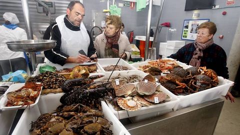 14 dic 2014 . Actualizado a las 05:00 h.«A xente ata se enfada con nós. O marisco está moi caro». Hablan Luisa y Carmen, dos vendedoras de la plaza de abastos de Vilagarcía. Están detrás de un mostrador repleto de los mejores productos del mar arousano ante el que desfilan compradores que preguntan precios, tuercen el gesto y siguen su camino. Y es que, con las fiestas de Navidad a la vuelta de la esquina, las cotizaciones de los mariscos llevan ya días inmersas en su tradicional escalada. Da igual donde se mire: en los mercados de Pontevedra y Arousa, la centolla, la nécora, el camarón y la cigala tocan las nubes. Y eso que «a xente non ten cartos». Los clientes «miran mucho lo que van a comprar, y en vez de llevar tres kilos, llevan uno», explica Benito, otro placero. Así que también los comercializadores mirarán con lupa sus compras en las lonjas: no está el panorama para quedarse con la bancada llena de productos de lujo que nadie puede permitirse.