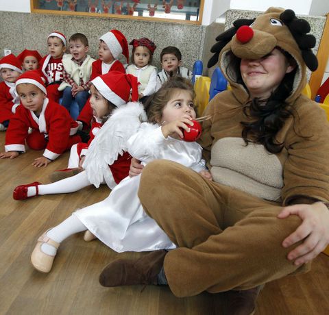 No tanto como los Reyes Magos, que ya se pasaron por Catoira la semana pasada, pero Papá Noel también madrugó ayer en Arousa. No quiso esperar a la Nochebuena y se dejó ver por varios puntos de la comarca. Por la mañana acudió a Cambados para reunirse con los niños de la guardería municipal, que lo esperaban con los ojos como platos y vestidos para la ocasión. Los más emularon al visitante y se vistieron de Papá Noel, pero también había angelitos, pastorcillos, muñecos de nieve y hasta de árbol de Navidad. La imaginación mandó ayer en la guardería, donde no faltaron regalitos y la fiesta para recibir las vacaciones.