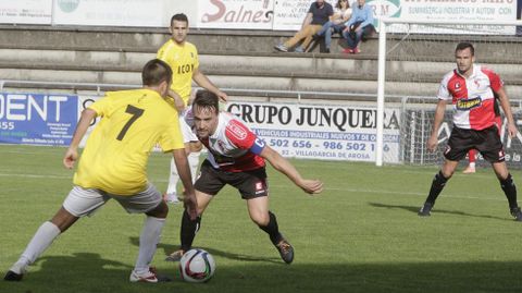 Frente a un conjunto vilagarciano estático y previsible, del que hoy nadie podría pensar que había ocupado el liderato en solitario de la Tercera solo dos semanas antes, el cuadro de Marcos Montes se movió como quiso por el rectángulo de juego, generando multitud de espacios en cualquier punto del campo con su propuesta combinativa. Por el centro o por las bandas, los redondelanos impusieron su fútbol de toque ante un conjunto local que con el paso de los minutos en la primera parte se fue partiendo, con cinco defensas al incrustarse Rivas a dos metros de la linea de cuatro zagueros, y su teórico compañero en la medular, Adrián Camiño, demasiado adelantado en el dibujo del 4-2-3-1 de Piscis. Una tónica que sorprendentemente fue a más tras con el 0-2 en el marcador al minuto 20 de juego.