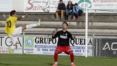 El Arousa consiguió aflojar la correa redondelana en los últimos diez minutos de la primera mitad, pero daba la sensación de que lo hacía más por la necesidad del Choco de recuperar el aliento tras su derroche de energía previo, con el fútbol redondelano arrancando en una presión asfixiante sobre la salida del balón del contrario. Un par de disparos de gran factura de Dani Bea fueron los mayores acercamientos vilagarcianos al gol.