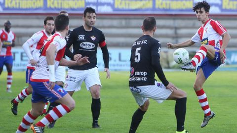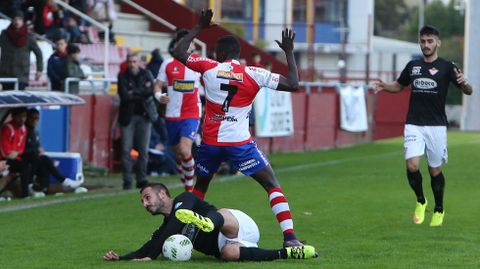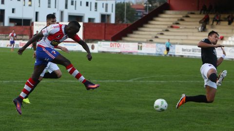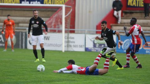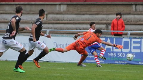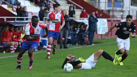 La primera incidencia del encuentro fue clave en su desarrollo. Vitra se lesionó en el cuello tras un encontronazo con Guillermo y fue sustituido por Julio. La incidencia del centrocampista en el juego de los locales fue total. Todo fluye mejor con él sobre el campo. Sidibé se colocó de central, donde hizo un partido magnífico, y Óscar y Sergio tuvieron más espacio para dedicarse a lo que mejor saben hacer. El canterano, ser un seguro en el centro del campo, y el diez porriñés a distribuir el balón con notable criterio. Dominaba el juego el Arousa pero el Silva no estaba incómodo porque la pólvora arlequinada seguía mojada. Hasta que ya en el minuto 42 un centro desde la izquierda superó a Guillermo y cayó a los pies de Sylla que remató en semifallo, pero su tiro pegó en la mano de Larusso. Penalti claro que marcó el propio delantero senegalés, que poco después pudo anotar el segundo, pero falló en el remate.