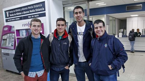 Se llaman Carlos, Nacho, Alberto y Rubén y son de distintos puntos de España como Cádiz, Ferrol o Tenerife. Pero, en realidad, viven en Marín, ya que pertenecen a la Escuela Naval. Ayer estaban comprando billetes en la estación de Renfe para ir a Santiago. Pero lo habitual es que usen el ferrocarril para desplazarse a Vigo. «Pontevedra lo tenemos bastante visto, así que aprovechamos los fines de semana para ir hasta Vigo, salir por allí a tomar algo o incluso ir de compras. La verdad es que sí vamos bastante», contaban todos ellos.