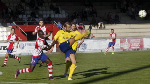 Hugo Soto ya avisó a los tres minutos, al rematar de espuela en el primera palo un saque de esquina. El Arousa tuvo una buena puesta en escena, con los laterales muy adelantados para intentar encontrar huecos en la poblada defensa del Dubra. Y el 1-0 llegó precisamente en una acción de Fran Matos, que centró muy templado un balón para que Eloy rematara en plancha. El centro fue bueno y el cabezazo, espléndido. Poco después tuvo una buena ocasión el conjunto visitante, prácticamente la única del partido, pero Cholo cabeceó alto cuando estaba en una posición franca para hacer algo más.