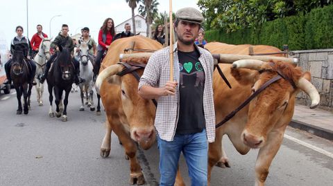 Tractores, carros y hasta motos y coches antiguos. Cualquier vehículo es válido para participar en el desfile que abre los festejos en honor al labrego. Todos estos medios de locomoción se convierten en improvisadas carrozas en las que los vecinos demuestran su imaginación. Hay quien recrear el corral de casa en el remolque, y lo llena de gallinas, patos y hasta pavos reales. Hay quien opta por habilitar toda una taberna, en la que los espantapájaros se convierte en sus clientes. Y hay quien simplemente busca hacer reír y convierte su pequeño tractorillo en un florido jardín. Algunos incluso están mecanizados, como el leñador que corta un tronco.