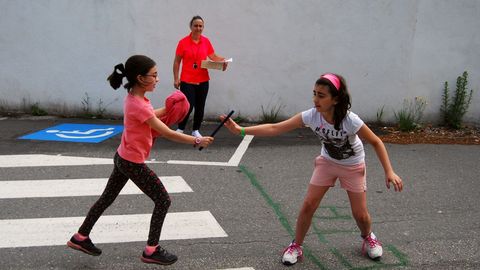 El alumnado del colegio de Baño se disputó sus propias olimpiadas, una actividad organizada por la asociación de padres y madres. Recibieron la visita del portero del Celta Sergio Álvarez.