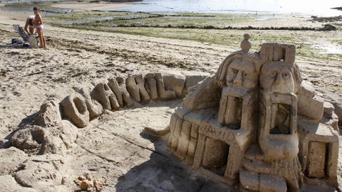26 oct 2017 . Actualizado a las 05:00 h.Las esculturas de arena son una expresión artística efímera. Sin embargo, la que este fin de semana se irguió sobre la superficie de A Covacha (Carril) parece tener algo del gusto de Poseidón, porque la marea aún no se la ha llevado. La obra -una sucesión de rostros desencajados, de miradas fijas, de perfiles recortados contra una siniestra oscuridad- no solo agrada a los dioses: también quienes recorren el paseo marítimo saludan el esfuerzo realizado por el artista para realizar esta composición. Tanto es así, que parece que el público está dispuesto a prolongar la vida de esta pieza hasta donde sea posible, y todos los días hay alguien que baja a la arena para refrescar, sin alterarlos, a estos seres e otro mundo. foto mónica irago