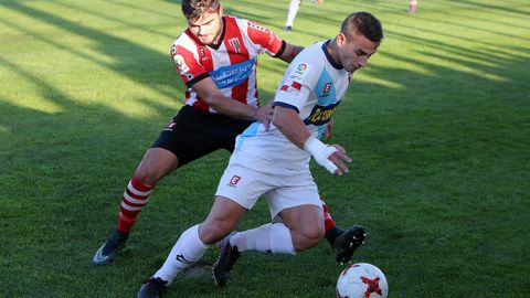 Tienen razón los entendidos cuando tiran de tópico para pronosticar el argumento del derbi de turno. Aunque solo sea para referirse a ese primer acto en el que los dos equipos mantienen en plenitud sus facultades físicas. Y es que salvo excepciones que confirman la regla, los equipos ven mutadas sus personalidades grupales para diluirse en el marasmo de un cuerpo a cuerpo sin distinción de colores, abocado al 0-0 de no terciar algún golpe de efecto en verso suelto. Ayer ni el Céltiga semejó de inicio ese equipo apostado en el orden y lanzado al contraataque, ni el Arousa el conjunto de fútbol alegre y combinativo que madura la cocción del gol. Uno y otro fueron al choque. A pelear cada pelota. A no regalar ni un segundo de reflexión al contrario cuando tocaba robarla. A no perder un momento de pausa cuando se disponía de ella, mordiendo con velocidad cada metro de distancia a la portería rival a base de cabalgadas veloces y balones largos las pocas veces que el cuero se deshacía de la prisión de las melés en el centro del campo.