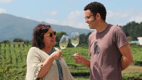 En lo que sucede en el Pazo de Almuíña reside parte de la magia de Os Xoves de Códax. «Este espacio, este tiempo, que es algo de lo que no dispongo en estas fechas, es una maravilla», reconoce Jairo, fascinado con la oportunidad de hacer un alto en su intensa gira musical para poner en común su trabajo con el de Uxía. A ello ayuda el entorno, una casona antigua completamente rodeada de viñedos en la que se respira tranquilidad. Con el río a solo unos pasos y un sinfín de rincones diferentes en los que inspirarse, en los que compartir música. Aquí, ambos han descubierto que, aunque sus estilos son diferentes, tienen mucho en común. «Los dos somos curiosos y nos gusta experimentar y compartir músicas de otras latitudes», asegura Uxía. «Hay tantos colores ahí fuera que es una pena no aprovecharlos y nutrirte de ellos», ratifica Jairo. «Eso coincide mucho con mi visión de la música. Depedro forma parte de esa gran familia de músicos con los que tengo afinidad y con los que comparto mi afinidad por Narf», insiste la cantante, quien sostiene que lo que empezó en el Pazo de Almuíña «es solo el principio». La artista lleva ya siete años participando en el ciclo estival y le avanza que «la experiencia en la bodega va a ser mágica. Es un momento único en el que el sol se pone sobre la ría, el vino... Todo ayuda a crear complicidad», le cuenta a Depedro. «Me parece maravilloso que alguien externo al mundo de la música cree una plataforma de la que puedan surgir estos encuentros. No tengo más que agradecimiento», añade Jairo. «La música y el vino hacen un buen maridaje y ya dicen que un buen vino es el que te hace cantar», concluye Uxía. Y todo ayuda. Porque lo cierto es que en el concierto que ofrecieron solo unas horas después, el público pudo disfrutar con esa magia.