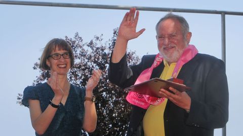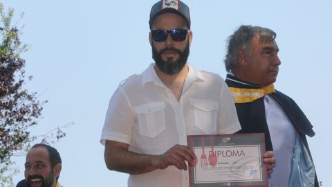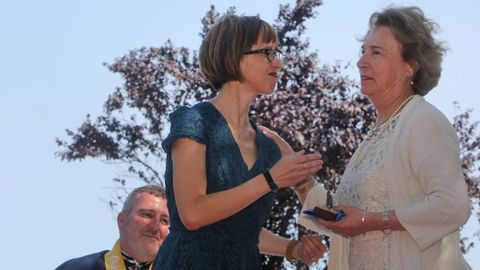 En medio de su pregón, Manquiña demostró cintura y se lamentó de que, al autor de todo esto, las montañas de O Barbanza se le habían quedado «un pouco baixas». Y es que el viento del Norte sopló con fuerza durante los actos de la Festa da Ameixa. No importaba demasiado: el aire aliviaba el intenso calor. Y pareció aplacar el conflicto latente entre la Orde da Ameixa y el Concello de Vilagarcía. El alcalde, tal y como había anunciado, no se sumó a los actos oficiales, que fueron presididos por Ángeles Vázquez Suárez en representación de la conselleira do Mar. Es al titular de ese gabinete, dijo Villanueva, a quien corresponde presidir el evento. Y ahí dejó las referencias al encontronazo con Alberto Varela, quien considera que le correspondería, como alcalde, ocupar ese lugar. «Hoxe é o día da festa. Mañá xa falarei deste asunto», advirtió el patrón mayor.