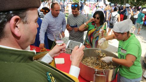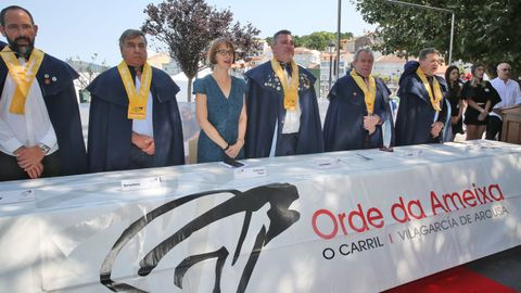 Que el alcalde no acudiese a los actos de la Orde da Ameixa no significa que no participase en la fiesta. Acompañado por varios de sus concejales, el primer edil buscó acomodo en el recinto con las integrantes de la asociación AmarCarril, un colectivo de mariscadoras que han decidido explorar las posibilidades turísticas de mariscar a los pies de Cortegada.