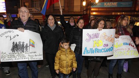 El colectivo venezolano en Vilagarcía se sumó a las concentraciones que ayer fueron convocadas en toda Galicia para manifestarse a favor de Juan Guaidó y exigir la marcha de Maduro. En el acto participaron más de un centenar de personas, entre quienes se encontraban representantes del PP y de Ciudadanos. Los asistentes cantaron el himno de Venezuela y manifestaron su rechazo a un régimen «que secuestra a los niños».