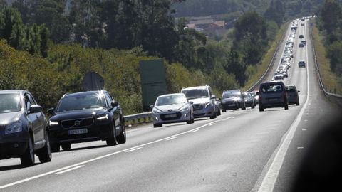 La Autovía do Salnés se llenó de automóviles, con una circulación muy dificultosa en los accesos a Sanxenxo y el tramo final hacia O Grove