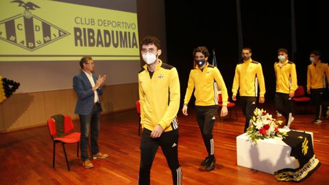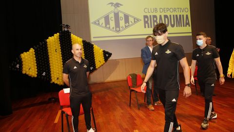 14 jun 2020 . Actualizado a las 05:00 h.O alcalde de Ribadumia, David Castro, presidíu onte no Auditorio a recepción do Concello aos xogadores, corpo técnico e directiva do C.D. Ribadumia polo seu regreso á Terceira. Unha recepción adaptada aos novos tempos, co secretario do club e médico de urxencias tomándolle a temperatura na porta a cada un dos 80 contados asistentes que puideron asistir ao acto, ben separados entre si por unha morea de butacas valeiras por forza.