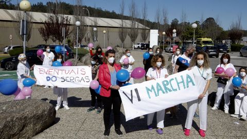 17 mar 2021 . Actualizado a las 05:00 h.Durante toda la semana se ha celebrado la sexta edición de la macha de eventuales del Sergas. Una marcha virtual entre la Consellería de Sanidade, en Santiago, y la sede del Parlamento Europeo en Bruselas. Las participantes llevan toda la semana enviando fotografías con globos y mensajes a la administración, reivindicando sus derechos y exigiendo unas condiciones laborales dignas. Cada foto simbolizaba 10 kilómetros de recorrido. Ayer completaron el recorrido virtual hasta Bruselas y para visibilizar su reivindicación realizaron una pequeña concentración en la entrada del Hospital do Salnés.