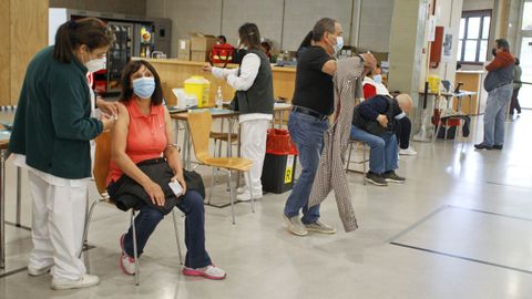 La operación de vacunación masiva había alcanzado a las 12.30 horas un tempo ideal: sin colas en la puerta y sin pausas en los puestos de vacunación, hacia donde las personas son dirigidas por varios asistentes. El trajín es constante pero sereno, y sorprendió a más de uno de los asistentes. «A verdade é que está todo ben organizado. Non tiven que esperar nada», nos cuenta un hombre de setenta años mientras aguarda, sentado en una silla, los quince minutos de rigor para comprobar que la vacuna no le ha provocado efectos secundarios de consideración.