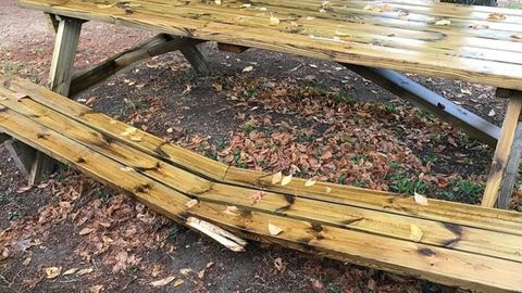 Unos vándalos rompieron las mesas que estaban en el patio de recreo