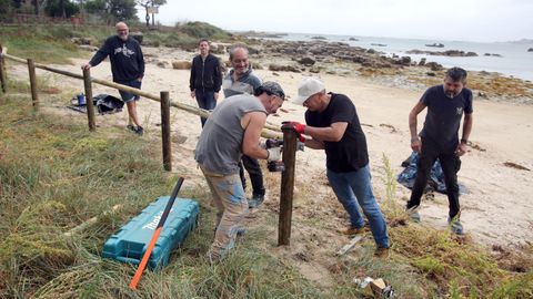 A Illa de Arousa sigue vallando sus playas con el objetivo de preservar las dunas de la erosión que provoca el tránsito de personas y de vehículos. Ya se hizo en Area da Secada y ahora es el turno de Espiñeiro. Esta semana empezaron allí las obras para instalar el nuevo vallado y se hace de manera más completa que en ocasiones anteriores, pues además de limitar el paso desde la zona exterior —más próxima al camino— también se colocarán barreras en la zona interior a modo de cierre perimetral en las zonas más sensibles de la duna.