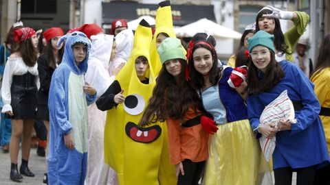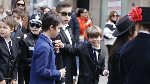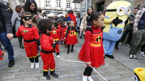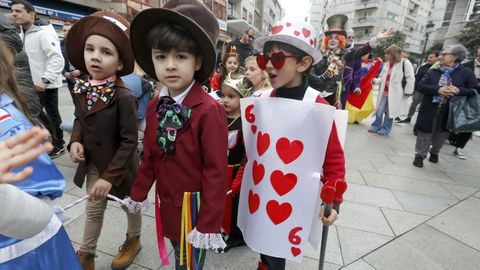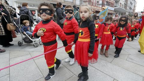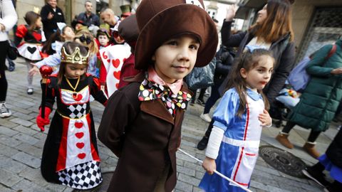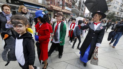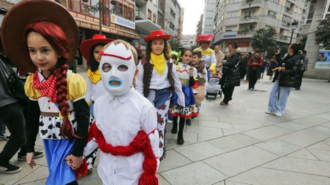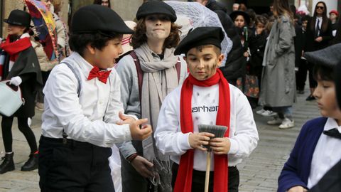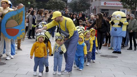 07 feb 2024 . Actualizado a las 05:00 h.Todavía hay mucho personal que está pendiente del disfraz, y ya el Entroido está a la vuelta de la esquina. Llegan el Entroido y la borrasca Karlota y en una hábil maniobra para escapar de ella, ayer el alumnado del colegio San Francisco de Vilagarcía participó en un espectacular desfile que llevó a la rapazada por las calles del centro de Vilagarcía. La chavalada iba perfectamente ataviada para la ocasión, y algunos de los progenitores también se unieron a la fiesta. Todo, en un adelanto de lo que se verá dentro de una semana en Vilagarcía, cuando se celebrará el desfile del Martes de Entroido, si Karlota lo permite. foto m. irago