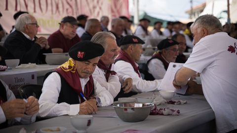 Como estaba previsto, a los postres del Xantar se dio a conocer el fallo del jurado del concurso de la Festa do Viño Tinto do Salnés. El primer premio en la variedad de tintos recayó en Víctor Manuel Oubiña Pérez, viticultor de la parroquia de Ribadumia, y el primer puesto en la modalidad de autóctonos fue para Carmelo Vieites Santos, vecino de Corvillón (Cambados). Se entregaron en total doce premios salidos de la cata final celebrada por la mañana.