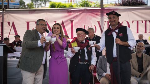 Anxo Varela, que presentaba junto a Rocío Padín la investidura de este año, dio paso al juramento de rigor: «Xuras defender hasta caer rendido, que non ebrio, as bondades de este noso tinto, causa do noso sorriso, señor da nosa identidade, fonte de saúde e sustento económico para moitas casas?».