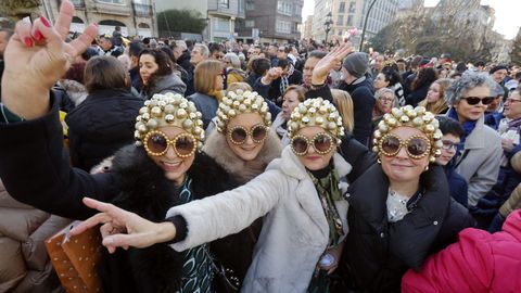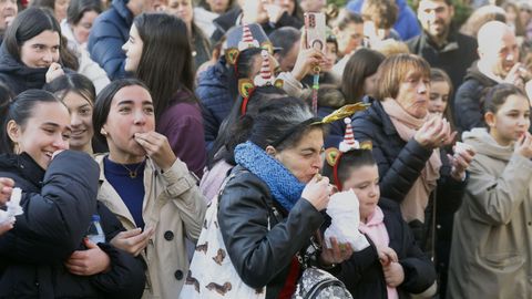 01 ene 2026 . Actualizado a las 18:10 h.Eran las once de la mañana y en cada rincón de Vilagarcía ya sonaba el runrún. Centenares de personas, como hormiguitas, dirigían su paso hacia el centro neurálgico de la ciudad y sede del Concello, la plaza de Ravella, para cumplir con su obligación localista y participar en una tradición que cumple 25 años y pone el nombre de la población en el mapa. Llegados desde Rubiáns, Sobrán, Guillán, A Torre, las Trabancas, A Golpelleira, Castrogudín, Sobradelo, Arealonga, carrilexos y vilaxoaneses y algunos que arribaron en tren desde otros puntos, porque si algo une a un vilagarciano del centro y uno de las parroquias, barrios y núcleos de los alrededores es que disfrutan como nadie de una buena fiesta, como la que se organiza cada 31 de diciembre al mediodía desde hace más de un cuarto de siglo.